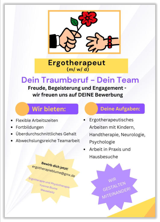 Bei uns sind Sie in den besten Händen. Seit 2005 arbeiten wir mit einem aufgeschlossenen und engagierten Team von Ergotherapeuten um Menschen mit Einschränkungen Handlungsfähigkeit im Alltag, gesellschaftliche Teilhabe und eine Verbesserung der Lebensqualität zu ermöglichen. Seit 2022 haben wir unser Angebot erweitert und können unseren Patienten auch physiotherapeutische Maßnahmen anbieten. Auf dieser Homepage finden Sie einen Einblick, wie wir das bewerkstelligen. Wir freuen uns darauf, Sie bald persönlich zu begrüßen.
